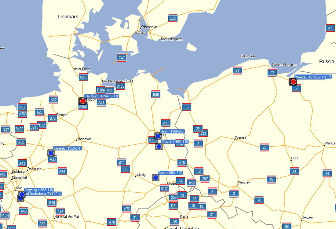 | Gesamtüberblick aller Regionen, in denen Geburten und/oder Sterbefälle der Familie Rittmeyer erkannt worden sind |